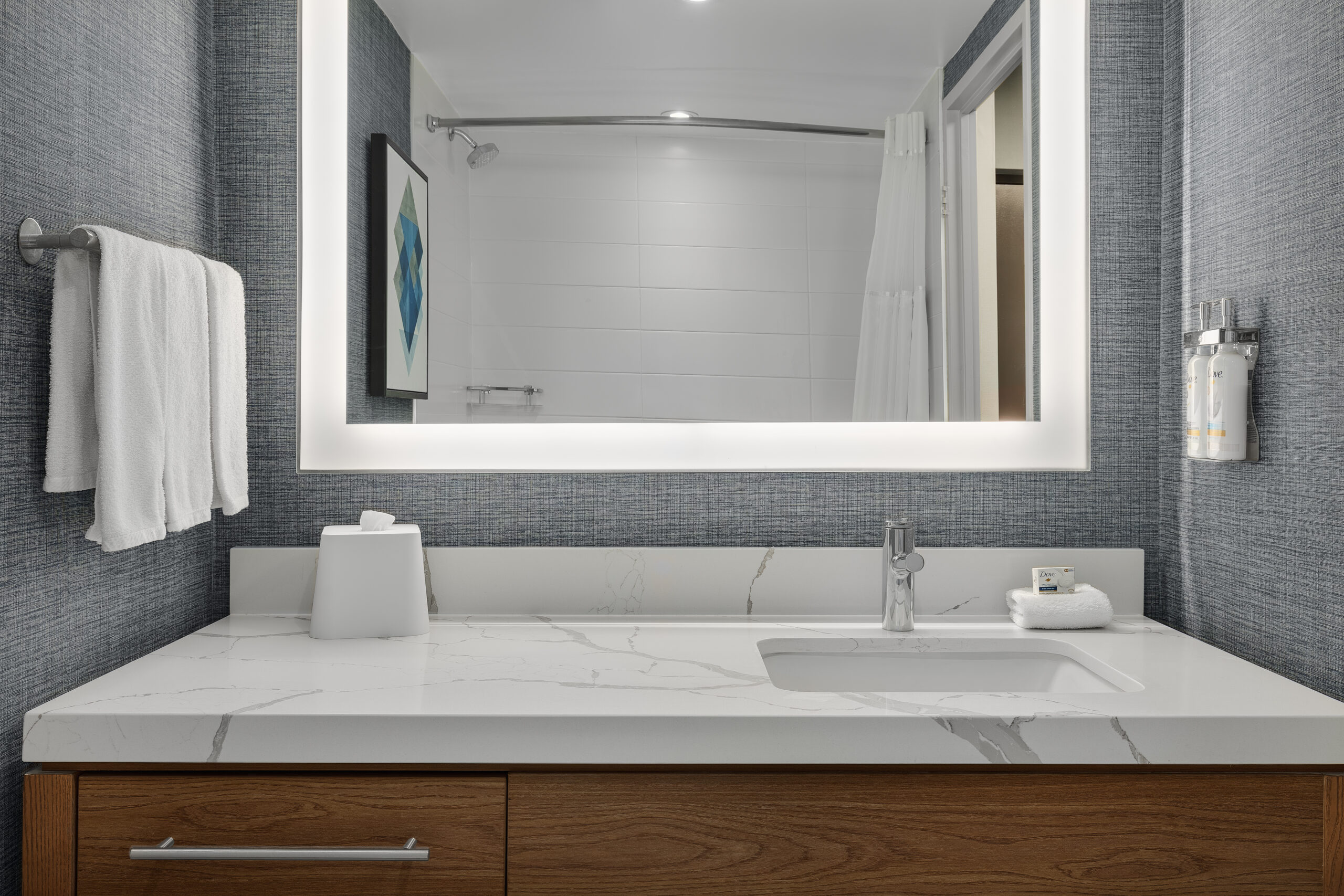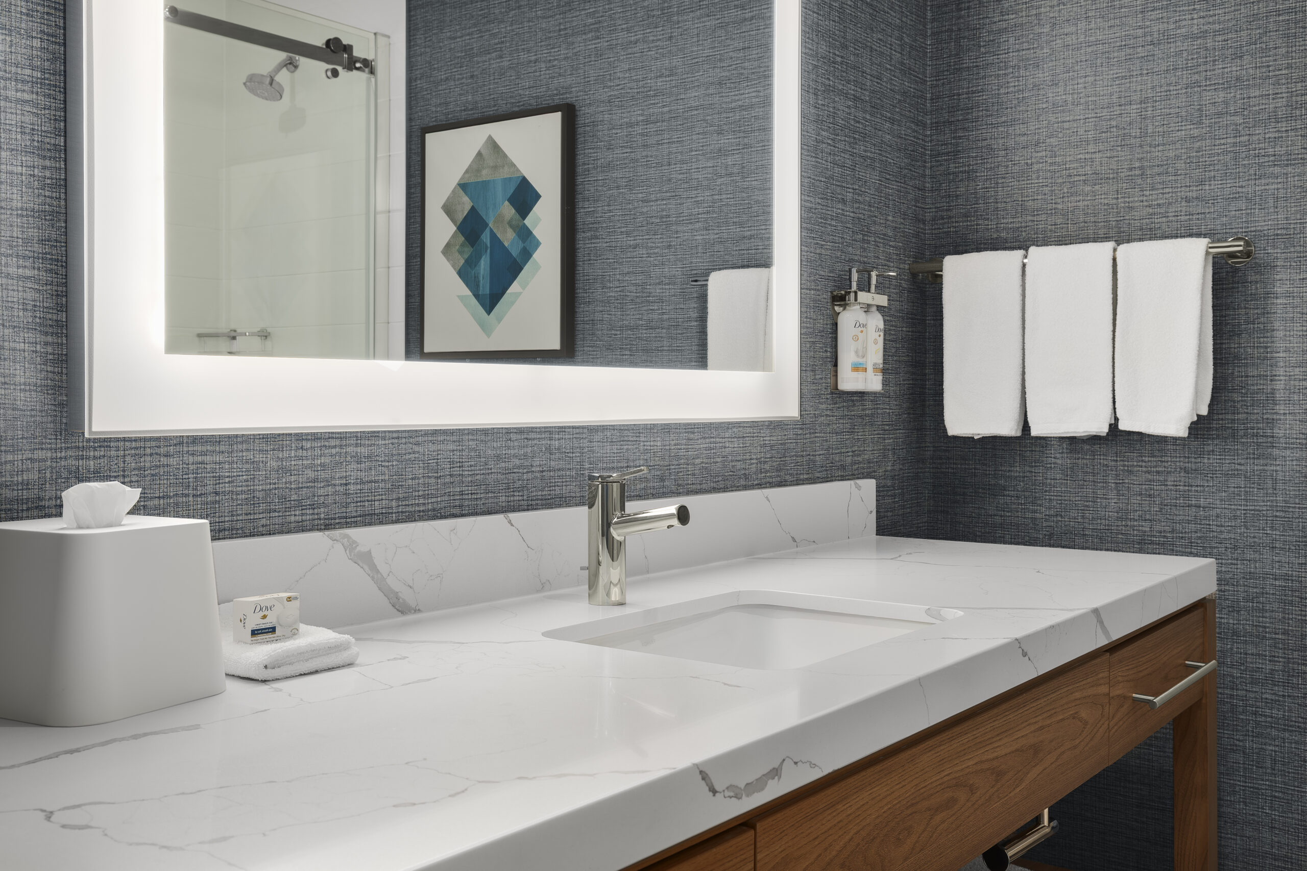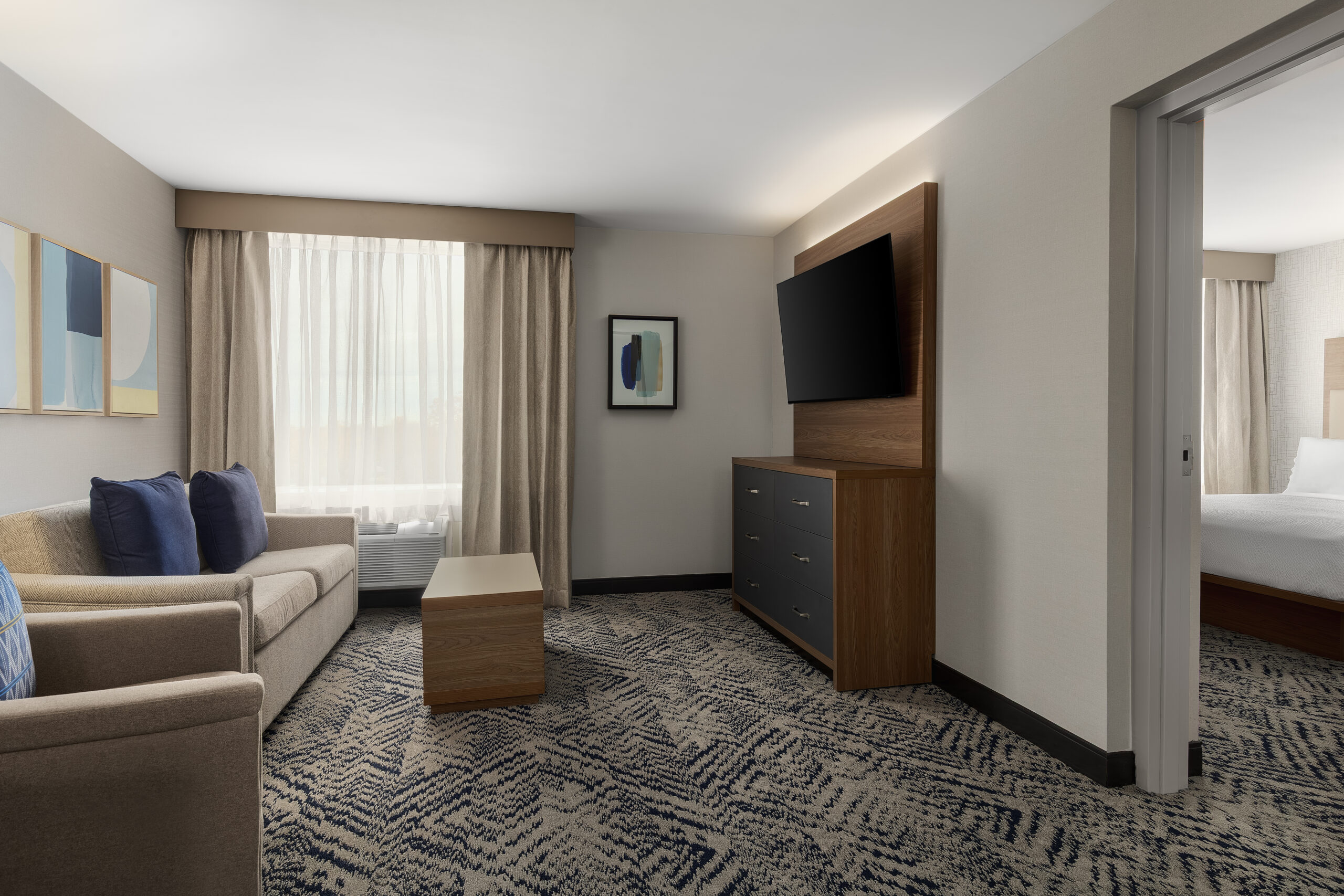 Each spacious suite offers a fully equipped kitchen with refrigerator, stovetop, microwave, dishwasher, cookware, and tableware. Need more? Borrow a blender, crockpot, or rice cooker from our Lending Locker to feel right at home. For snacks or drinks, stop by the 24/7 Candlewood Cupboard stocked with quick options. After a busy day, relax on your sofa or recliner while enjoying premium channels or the latest rentals. Guests looking to stay productive can use a dedicated workspace and complimentary high-speed WiFi.